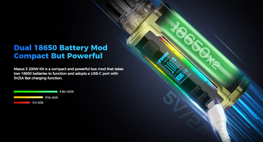 The Freemax Maxus 3 Box Mod Kit 200W combines full spectrum vaping and advanced FM COILTECH5.0/Double-D Mesh technology to offer an unparalleled vaping experience. Freemax Maxus 3 Kit features dual external 18650 batteries (not included), it offers an impressive 5-200W output range, complemented by a 5ml tank capacity with a top-fill design compatible with the Freemax M Pro 3 Tank. Its 1.06-inch TFT screen, versatile M Platform, and 5 output modes deliver personalized experiences. Equipped with FM CoilTech 5.0 Double-D Mesh and FM Chip 2.0 All Around Protections, it ensures top-tier performance and safety. With dazzling theme colours, flashing light bars, and ISO 8317 Child Resistant Certification, this kit embodies innovation, style, and a commitment to safety for a remarkable vaping journey.