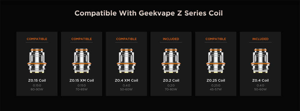 2pc Geekvape Z Series coil (Pre-installed: Z 0.2ohm, 70-80W; Spare Coil: Z0.4XM - 0.4ohm, 50-60W)