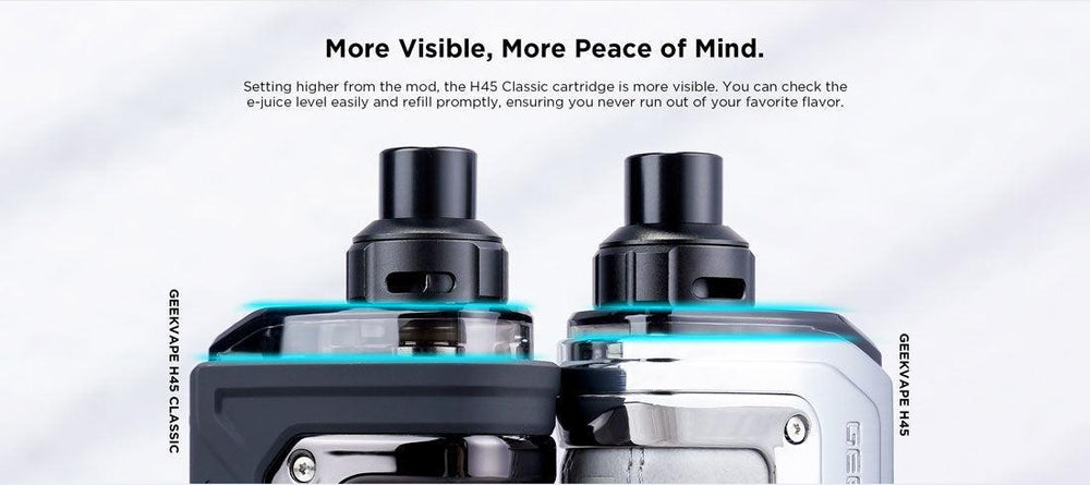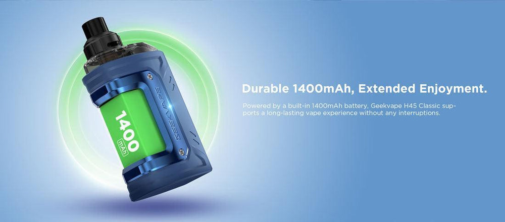 Geekvape H45 Classic (Aegis Hero 2 Classic) Pod Kit features the classic Aegis series aesthetic design and is built with a 1400mAh battery that offers a maximum output power of 45W. It is compatible with Geekvape B-series coils and uses the same cartridges as the previous generation Geekvape H45, but is 15% lighter, making it more suitable for your daily use. The new top-level three-proof airflow design allows you to easily enjoy an active lifestyle.