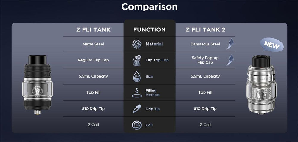The Geekvape Z FLI Tank 2 is an upgraded sub-ohm tank designed for flavor chasers, featuring a 29 mm diameter and generous 5.5 ml e-liquid capacity. It employs a top-fill flip cap for quick, spill-free refills and a leak-resistant top airflow system that delivers smooth, consistent vapor production. The tank also includes a spacious 510 drip tip, precise ten-level airflow adjustment, and compatibility with the powerful Geekvape Z Series Coils—the same coils used in the Z FLI Tank—known for high flavor quality and extended lifespan.