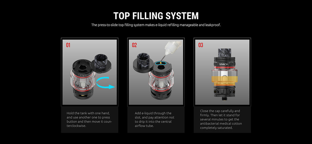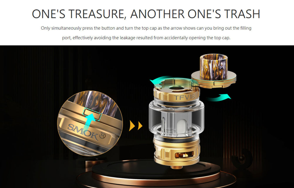 Capacity: 7.5ml (with TFV18 Meshed 0.33ohm Coil) / 6.5ml (with TFV18 Dual Meshed 0.15ohm Coil)