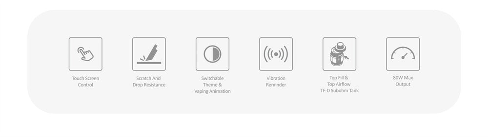 SMOK X-PRIV Solo Box Mod is not only easy to carry around but also offers a non-stop power supply. Protected by the magnetic battery cap is one 18650 battery which enables X-PRIV Solo Mod to produce 80W max output. The latest touchscreen technology makes the TFT screen large and user-friendly. All the vaping data you need, including the puff count and resistance of the coil installed are displayed in great detail. You can also combine SMOK X-PRIV Mod with other tanks for a different vaping experience.