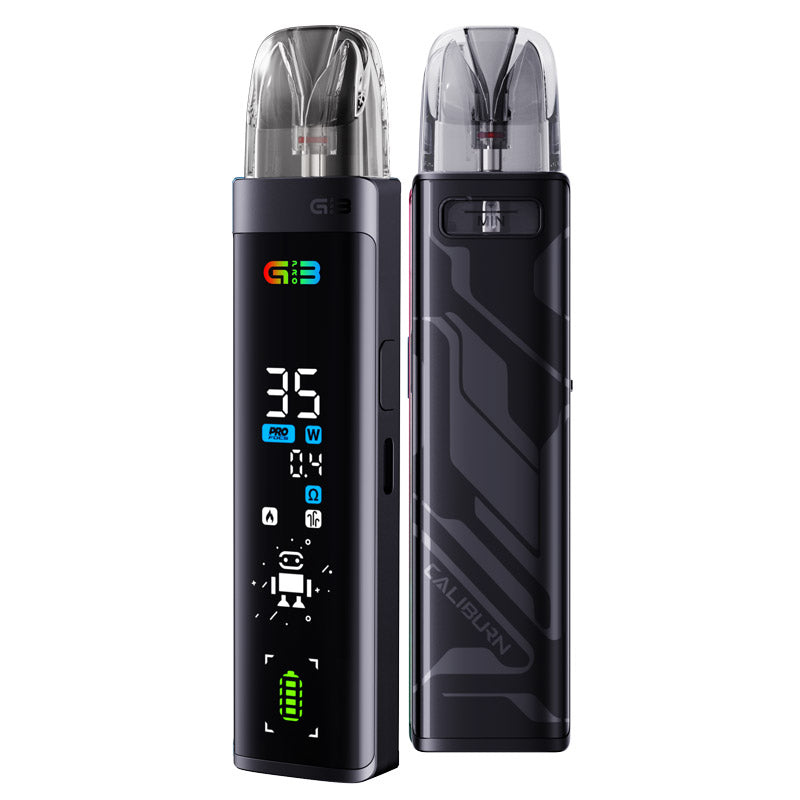 Grrreat to see all with the CALIBURN G3 PRO, the first-ever full-screen device. The full-screen UI design, featuring a dynamic interface, showcases technological sophistication and interactivity, allowing you to view all vaping details at a glance. Partnered with the newest 3ML-0.4ohm CALIBURN G3 cartridges, CALIBURN G3 PRO slays the game with unbeatable flavor, adjustable 35 W max output power, and unparalleled vision enjoyment.