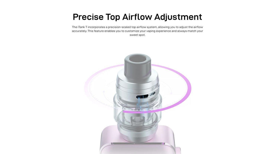 The iTank T incorporates a precision-scaled top airflow system, allowing you to adjust the airflow accurately. This feature enables you to customize your vaping experience and always match your sweet spot.